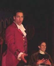 Abraham "Brom Bones" van Brunt was town-hero and prankster in the small New York village of Sleepy Hollow. Brom courted town-belle Katrina van Tassel, though this was challenged by womanizing schoolmaster Ichabod Crane who sought after Katrina's inheritance. At a Halloween party, Brom learned Ichabod was paranoid and superstitious, so told him the legend of the Headless Horseman to scare him off. That night, Ichabod happened upon the Horseman (possibly Brom in disguise though it is unclear) and disappeared, leaving Brom to marry Katrina.