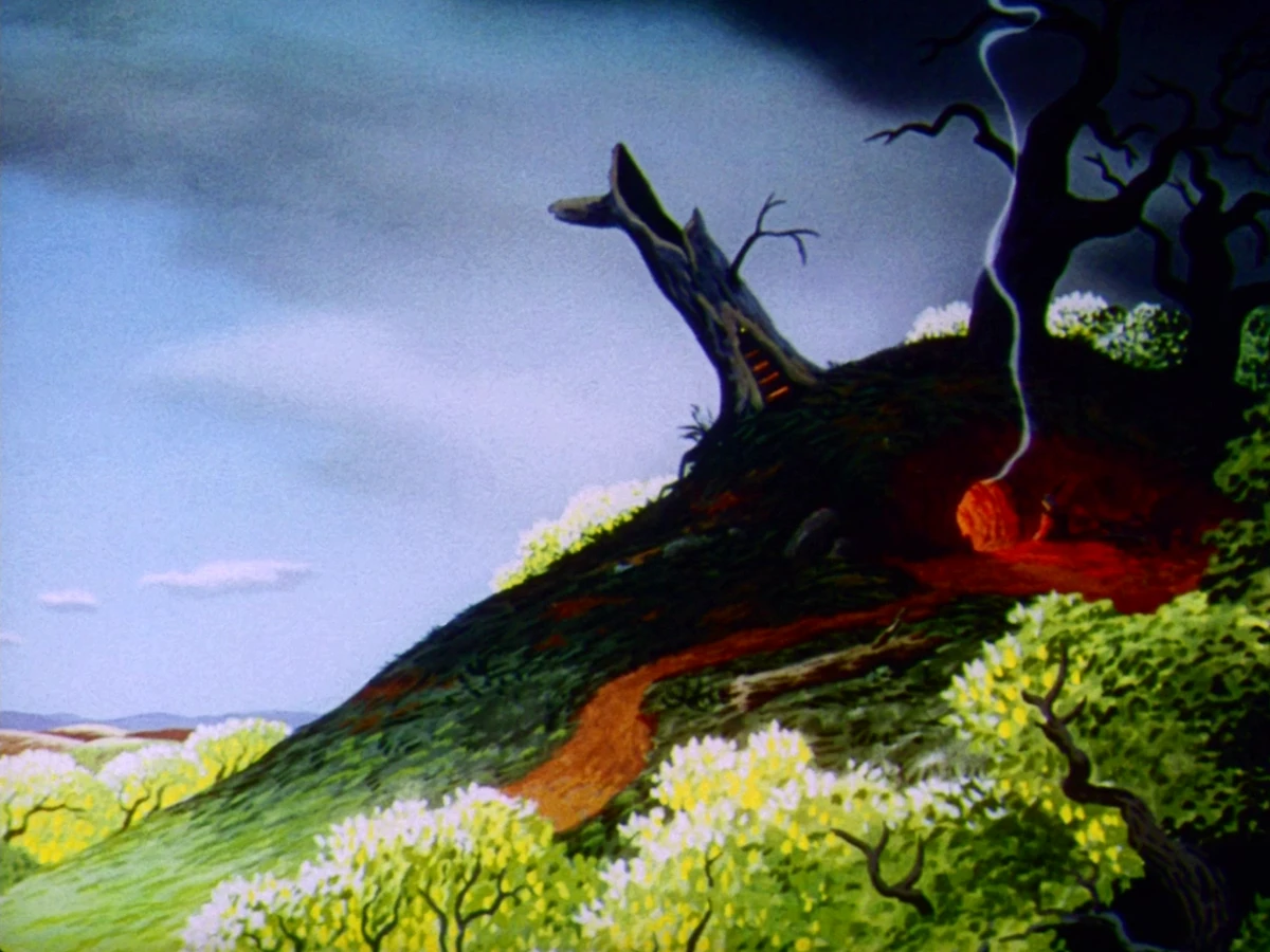 Chick-a-Pin Hill is a wooded hill which served as home to many critters. The time this occurred is described as "Long, long ago" in a time when "The critters were closer to the folks, and the folks were closer to the critters...and you might even say things were better all around".[3] The peak of the hill was marked by a dead-tree, which was home to the conniving Br'er Fox. Br'er Fox and Br'er Bear were often known to go about plots to capture the crafty Br'er Rabbit in hopes of eating him.