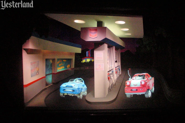 These car characters were integrated in 2000 for a Chevron sponsorship. Dusty was voiced by Matthew Howard and provided a safety-spiel due to incidents on Autopia. In 2017, they were replaced by ASIMO and Bird as part of a HONDA sponsorship.
