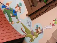 The two make a cameo in the Pleasure Island scene, with John watching as Gideon plays one of the park's games, while a policeman/gendarme keeps an eye on them. There is a mural of the two in the load-area.