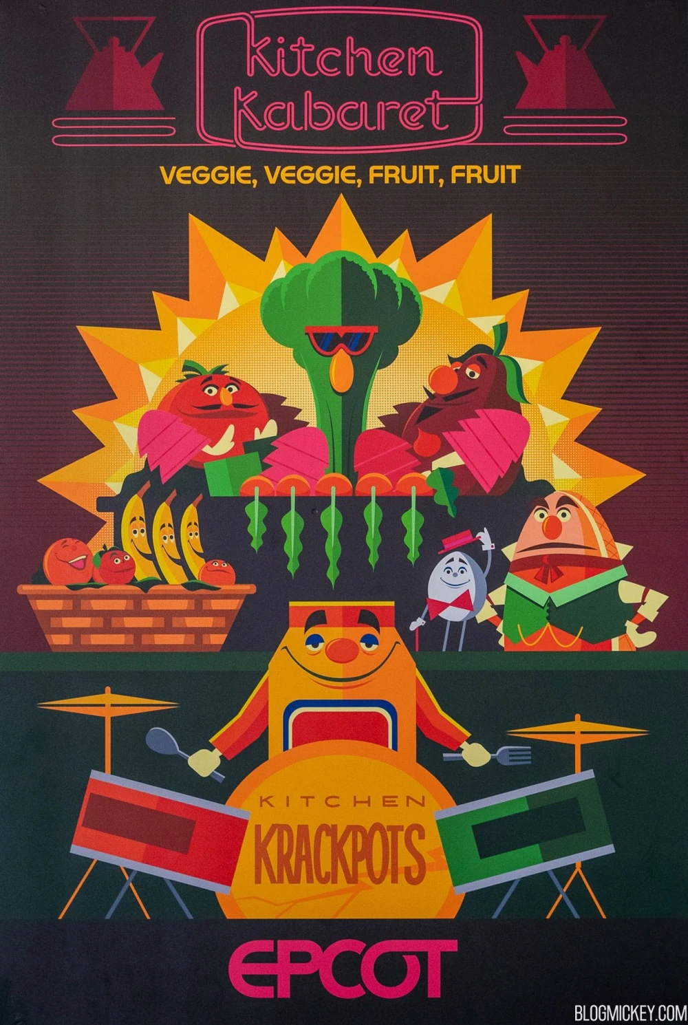 - Disney 100: The mural of 100 Disney characters in EPCOT depicted the Kitchen Krackpots outside of the Land Pavilion with a drum saying "Kitchen Kabaret".