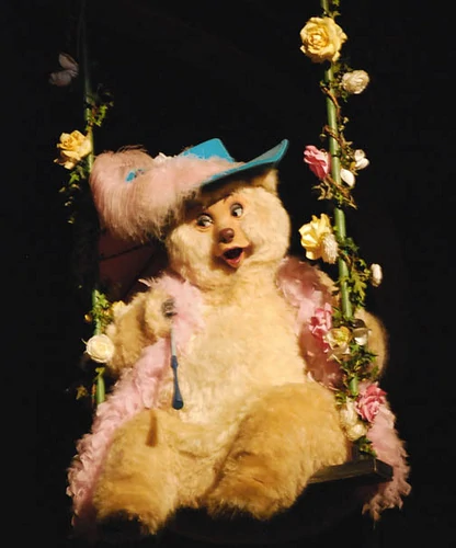 Around the late 19th/early 20th century, Teddie became employed by the Country Bears, performing in Grizzly Hall from a swing suspended from the ceiling. She is believed to have had a romantic affair with the Country Bears' master-of-ceremonies, Henry.